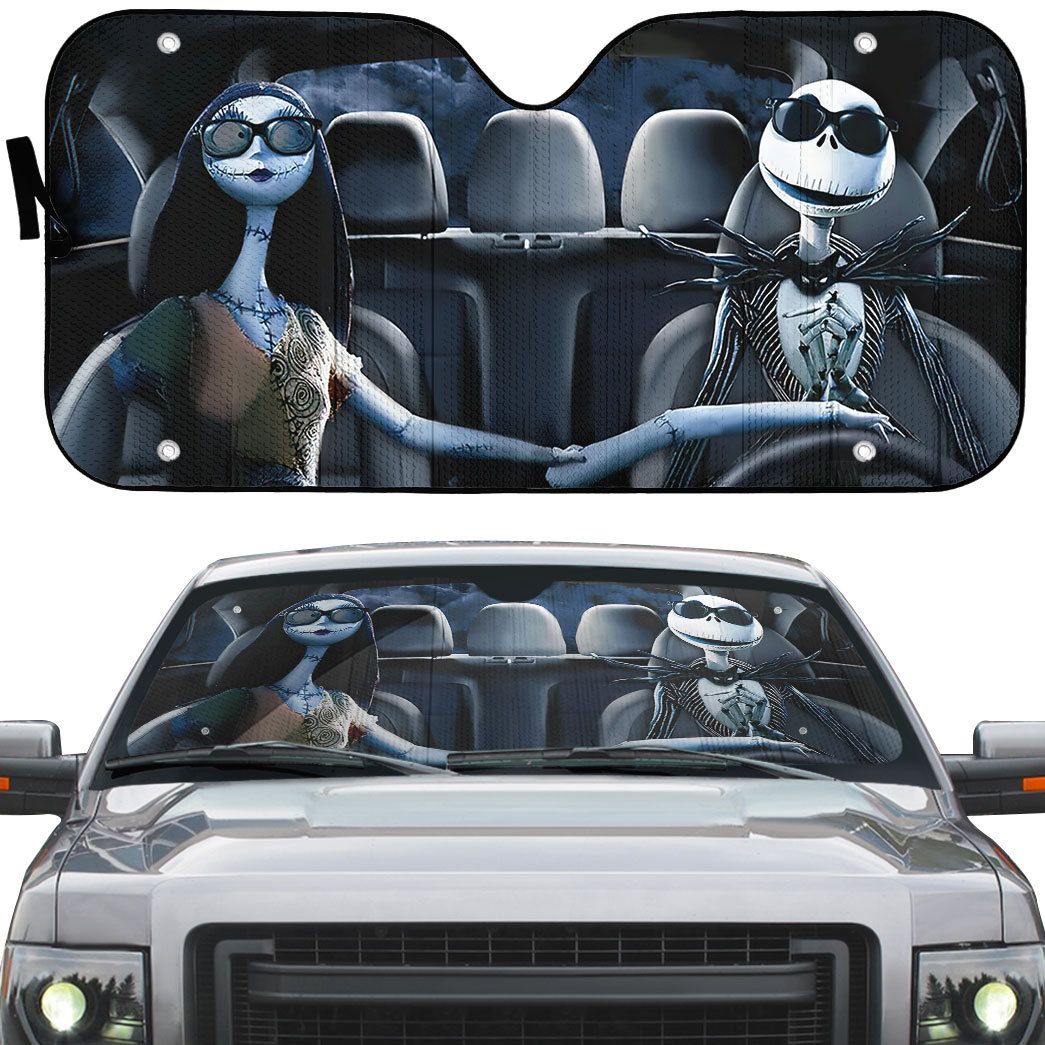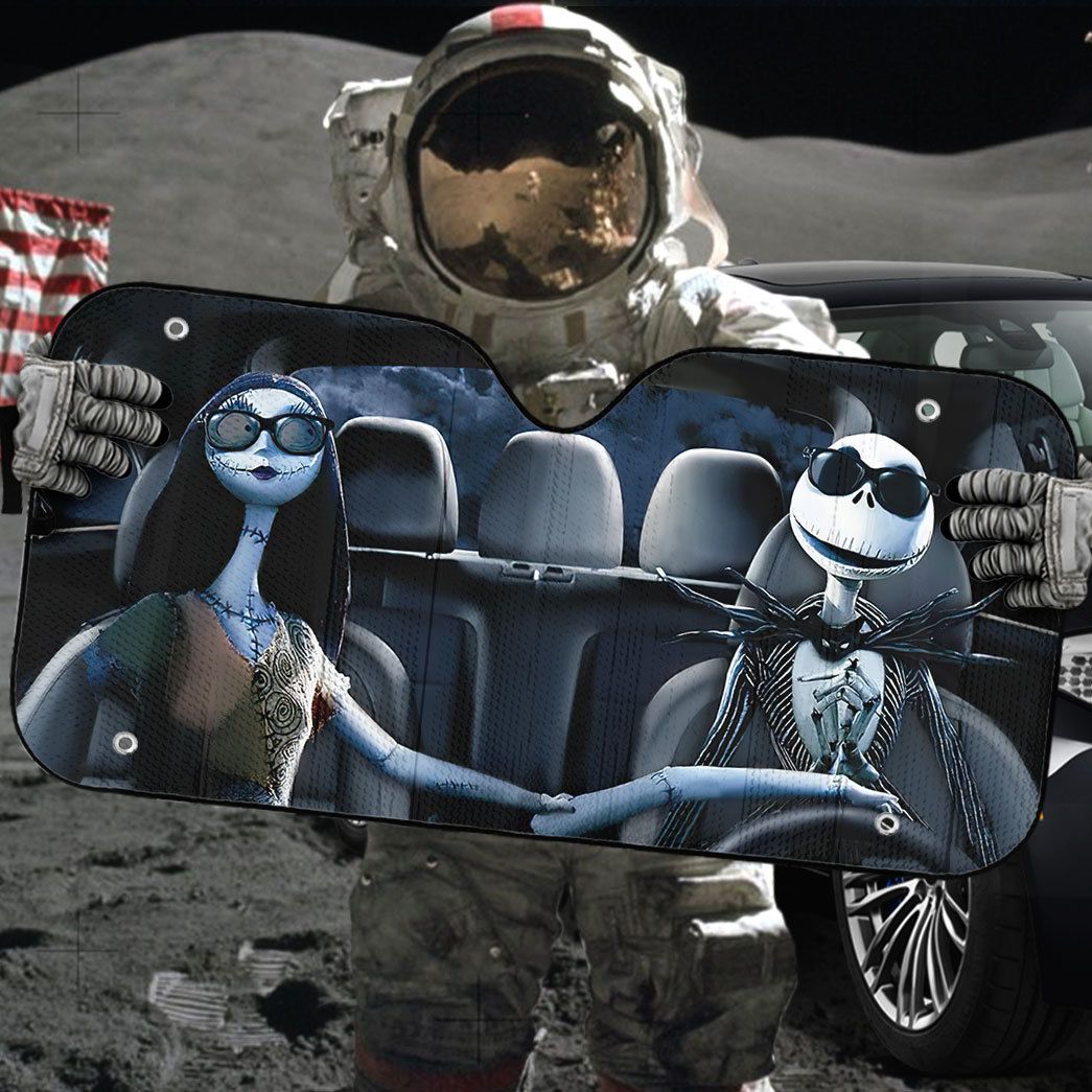 Gearhumans 3D Nightmare Before Christmas Jack And Sally Custom Car Auto Sunshade