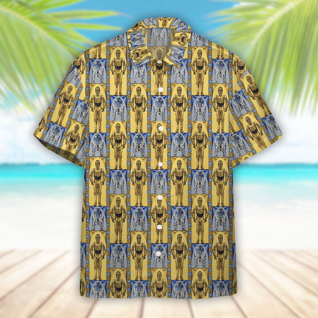 Gearhumans 3D S.W C3PO AND R2D2 Custom Hawaiian Shirt