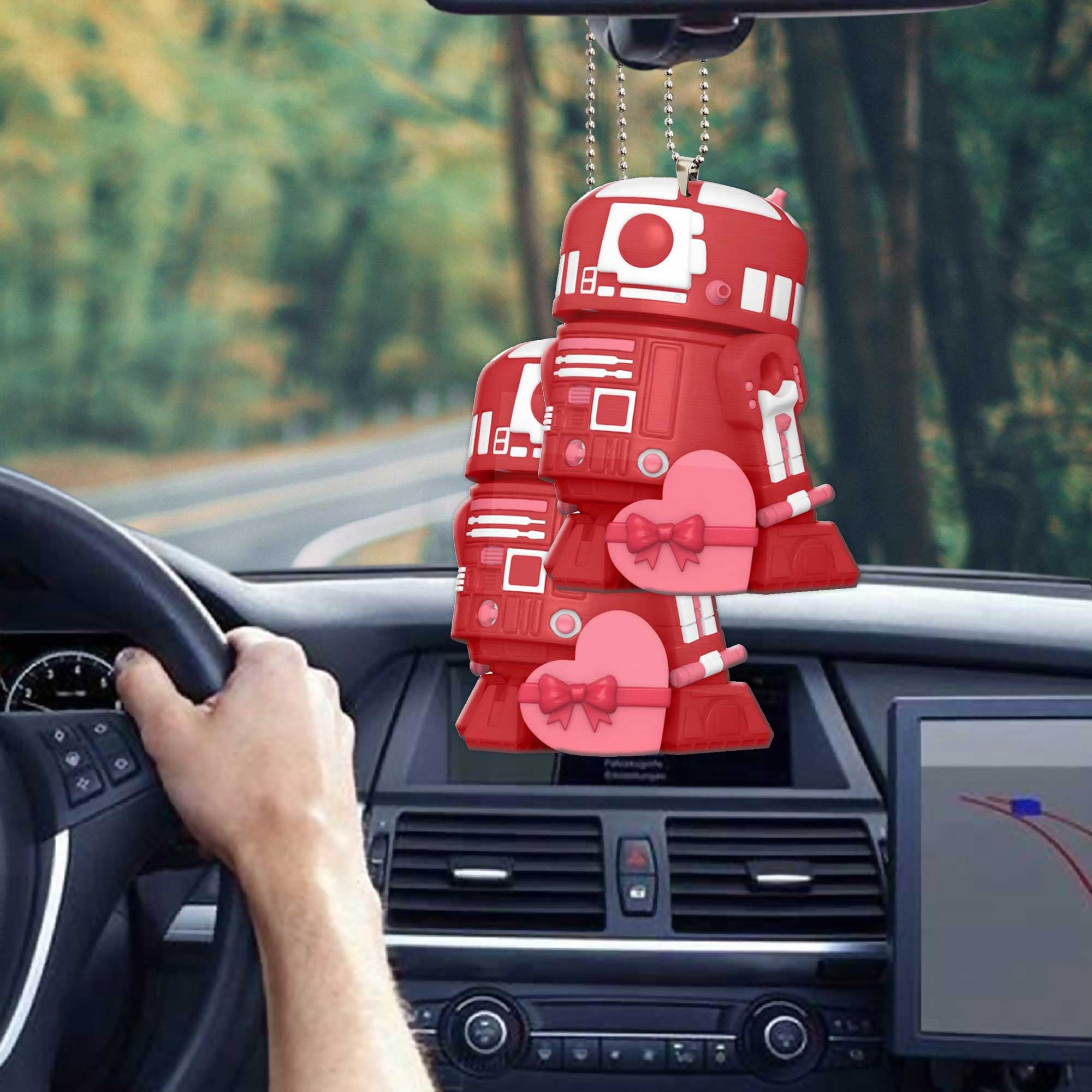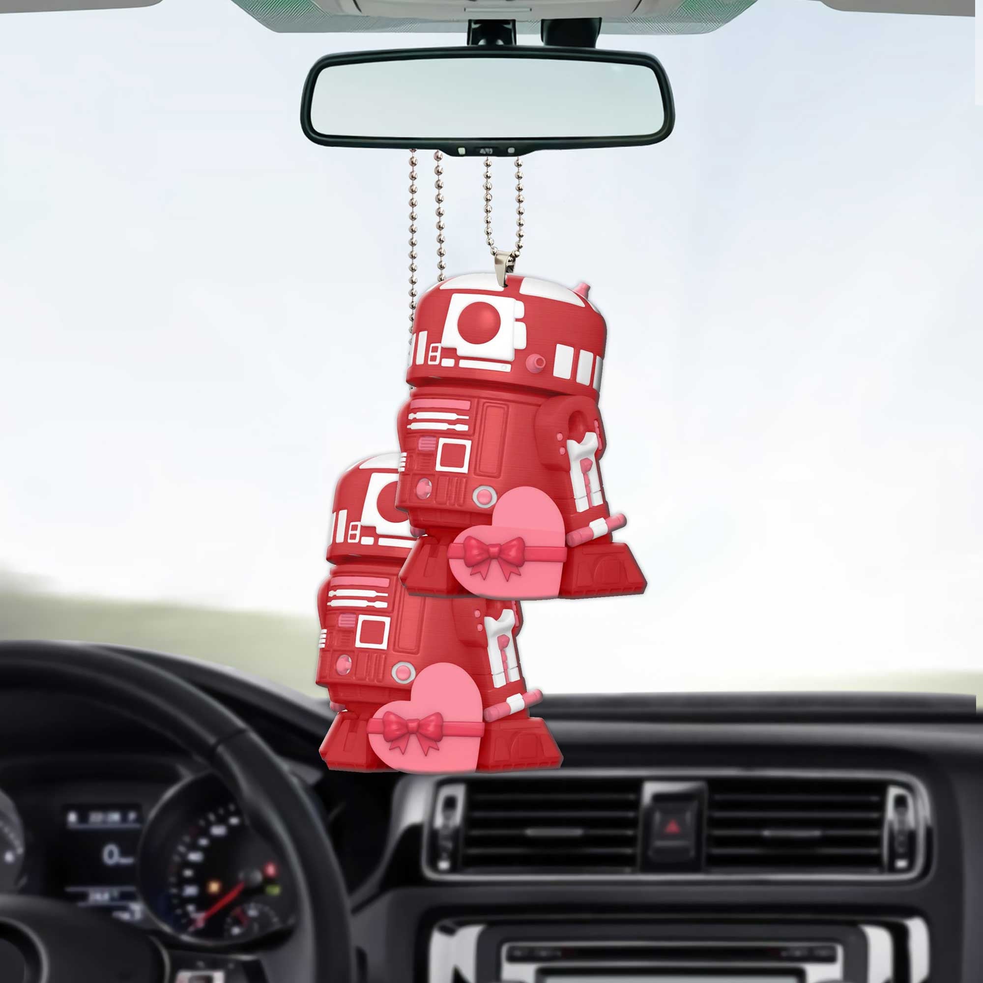 Gearhumans 3D S.W Yoda R2 D2 Happy Valentines Day Custom Car Hanging