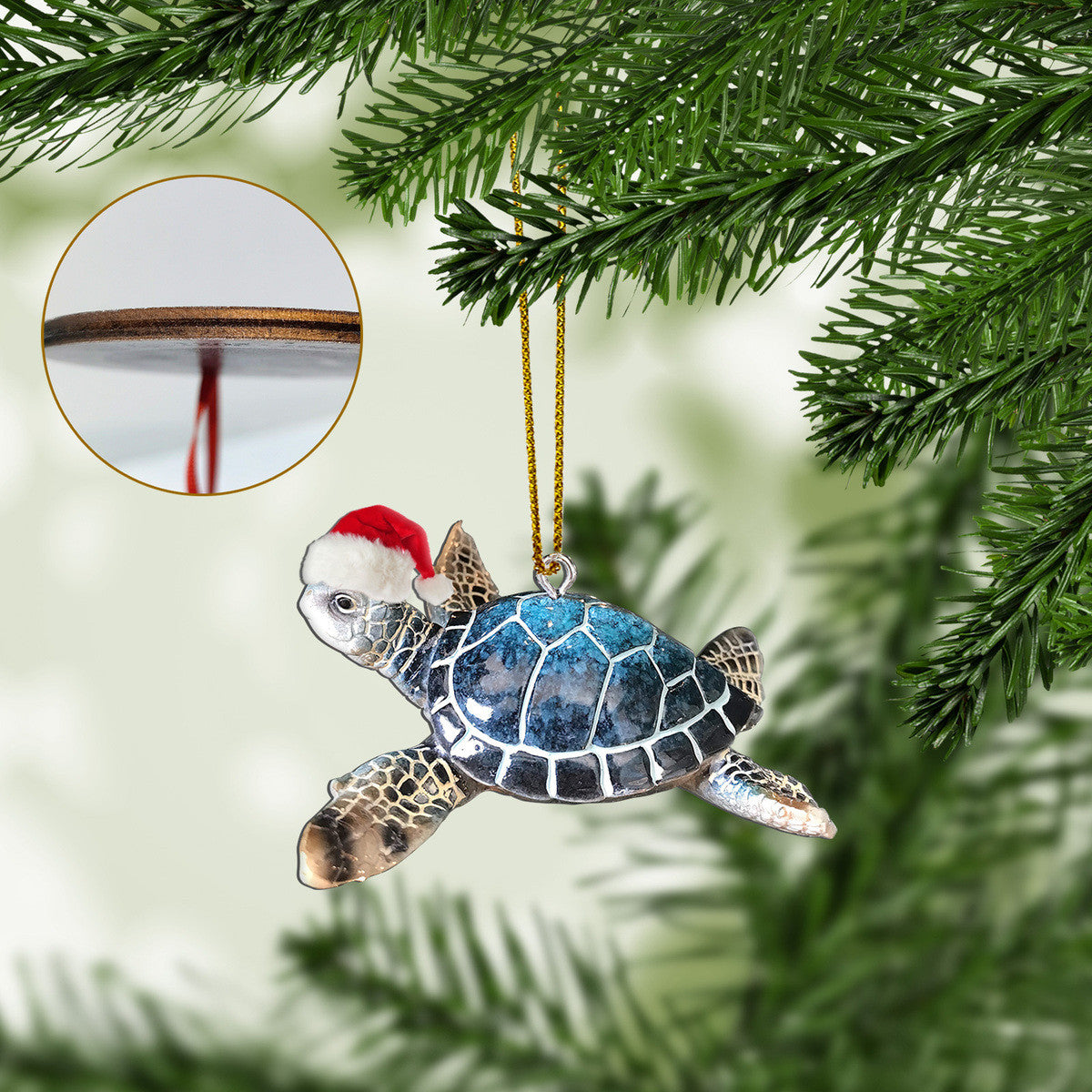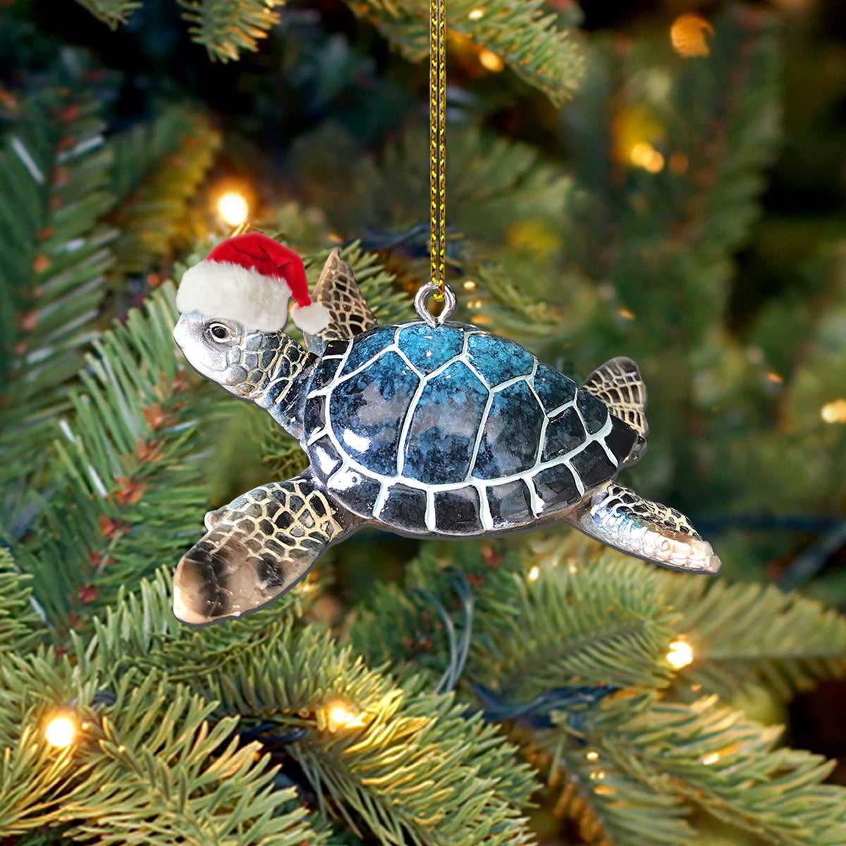 Gearhumans 3D Sea Turtle Santa Hat Christmas Custom Ornament
