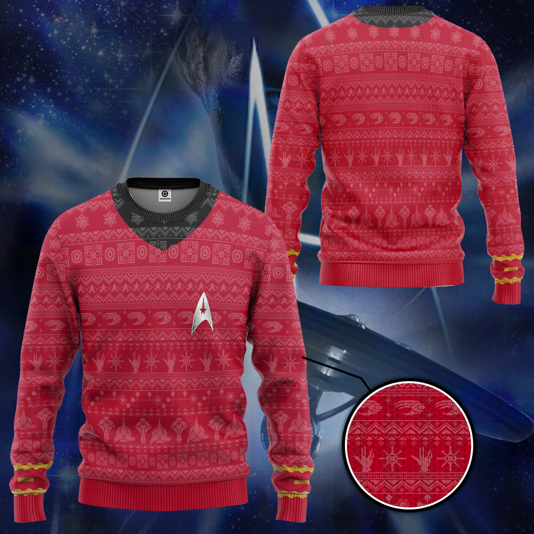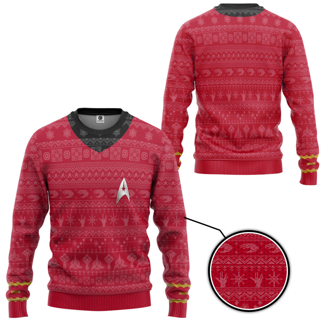 Gearhumans 3D S.T The Original Series 1966 1969 Red Ugly Christmas Custom Ugly Long sleeve