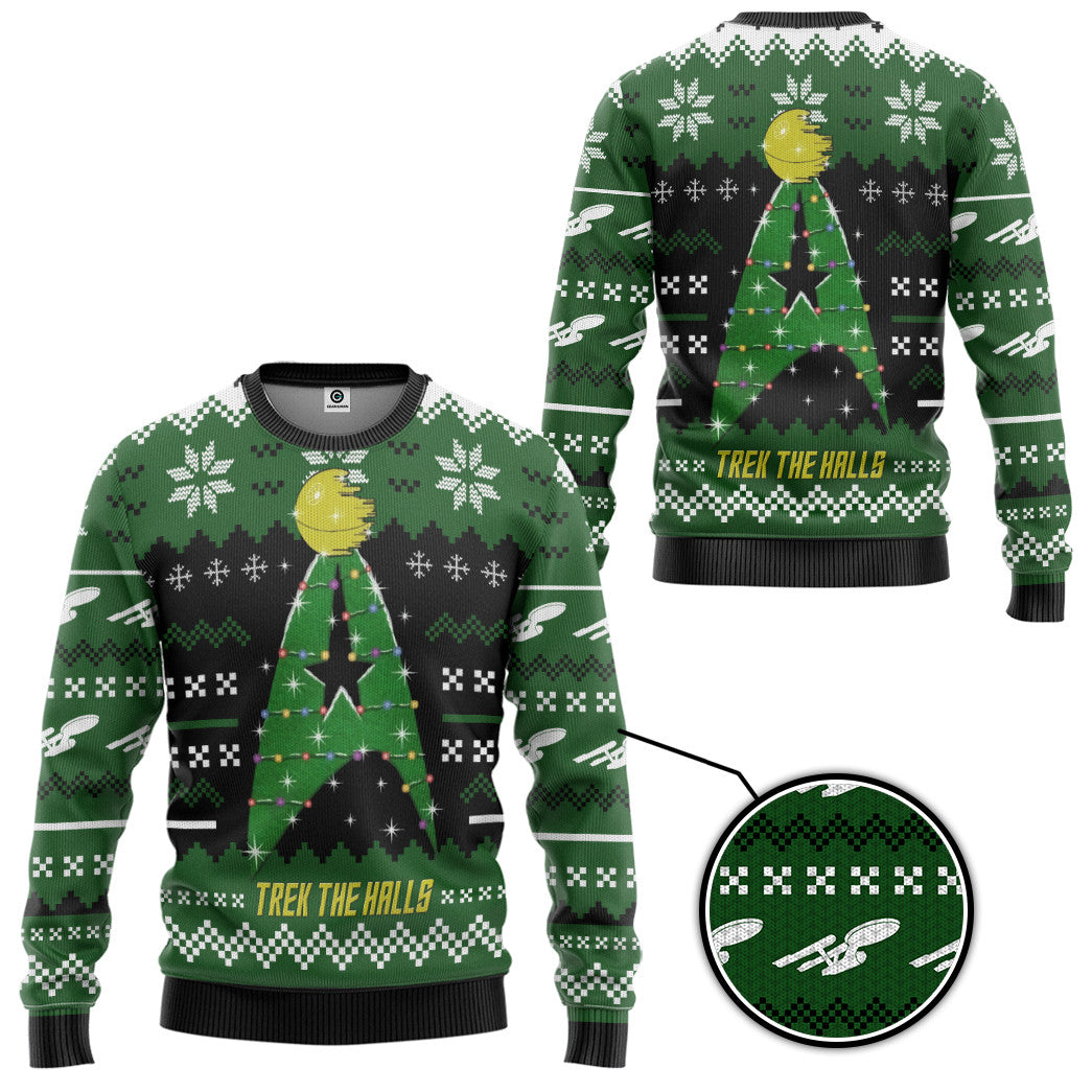 Gearhumans 3D S.T Trek The Halls Ugly Christmas Custom Ugly Long sleeve