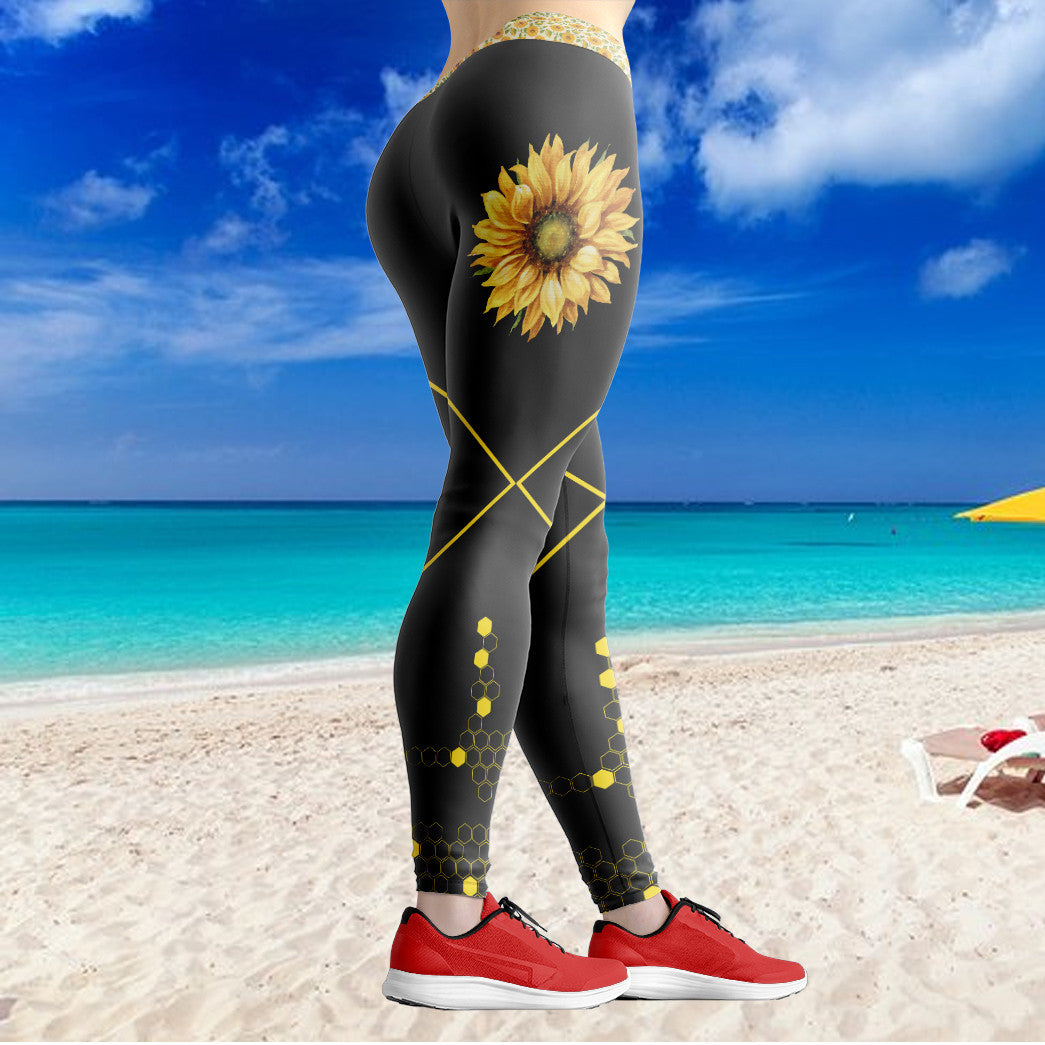 Gearhumans 3D Sunflowers Bee Mothers Day Custom Legging