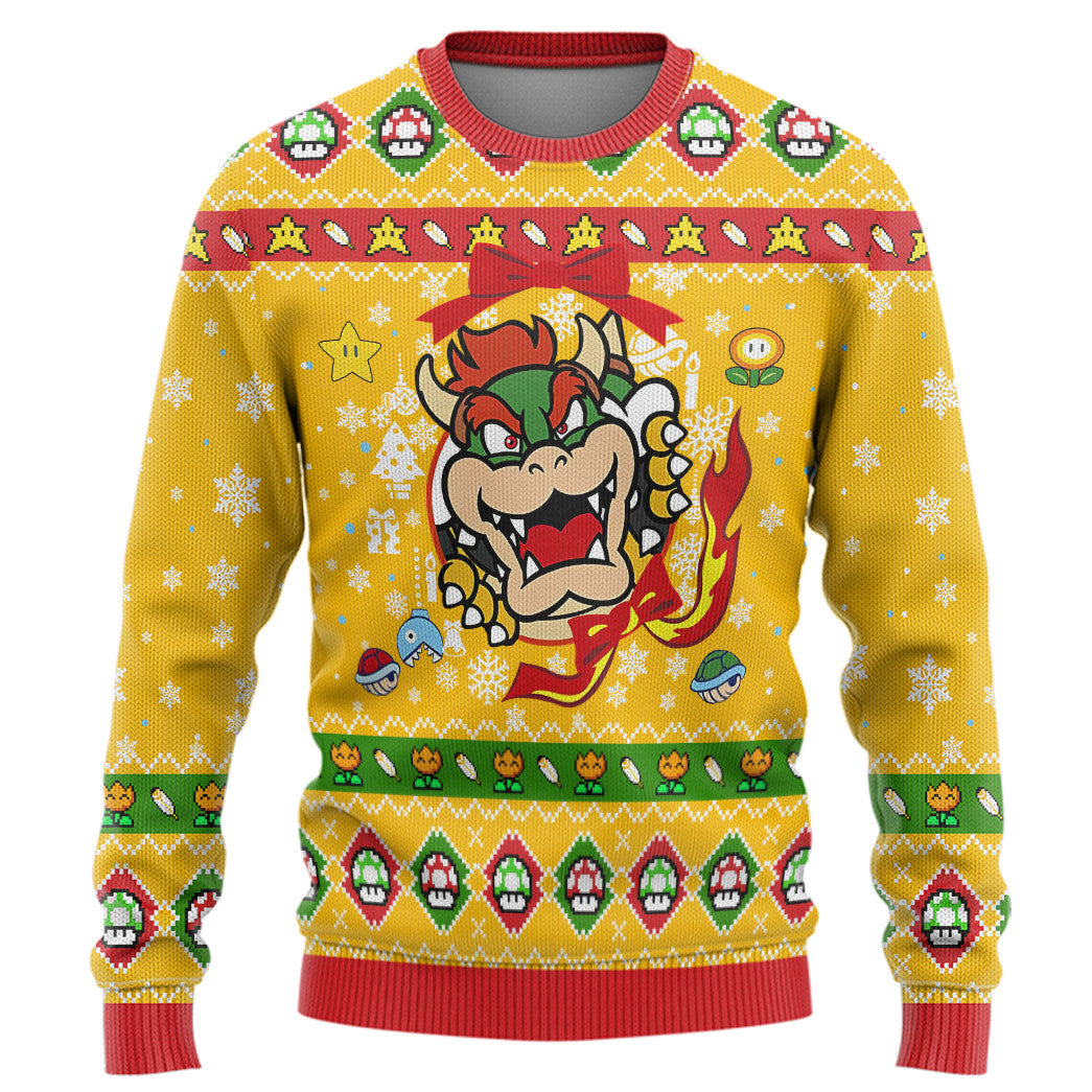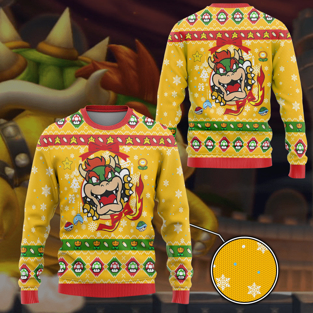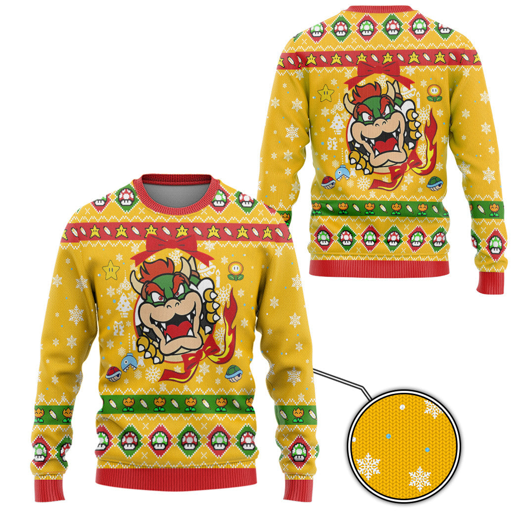 Gearhumans 3D Super Mario Bowser Custom Ugly Christmas Long sleeve