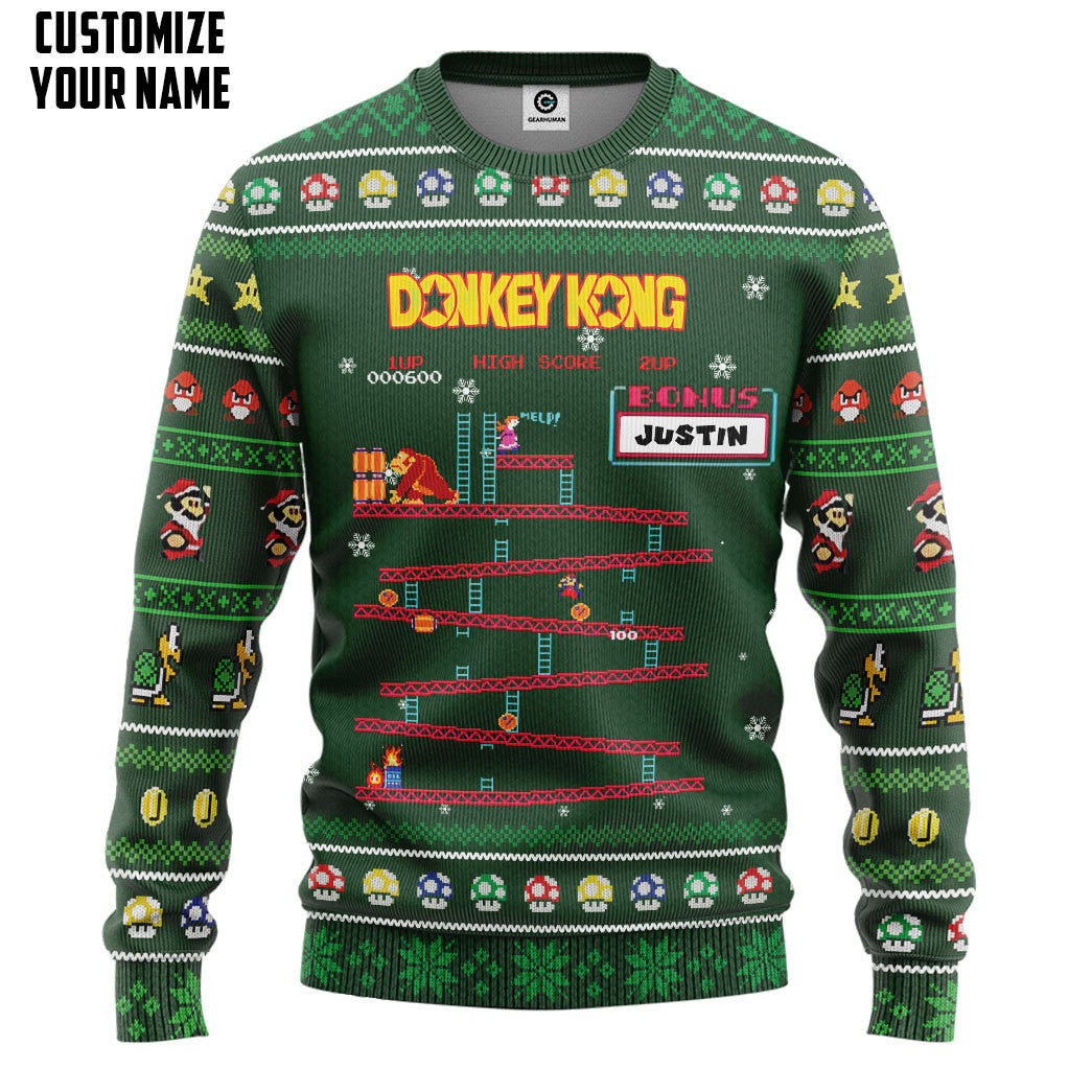 Gearhumans 3D Ugly Donkey Kong Christmas Custom Name Ugly Sweater