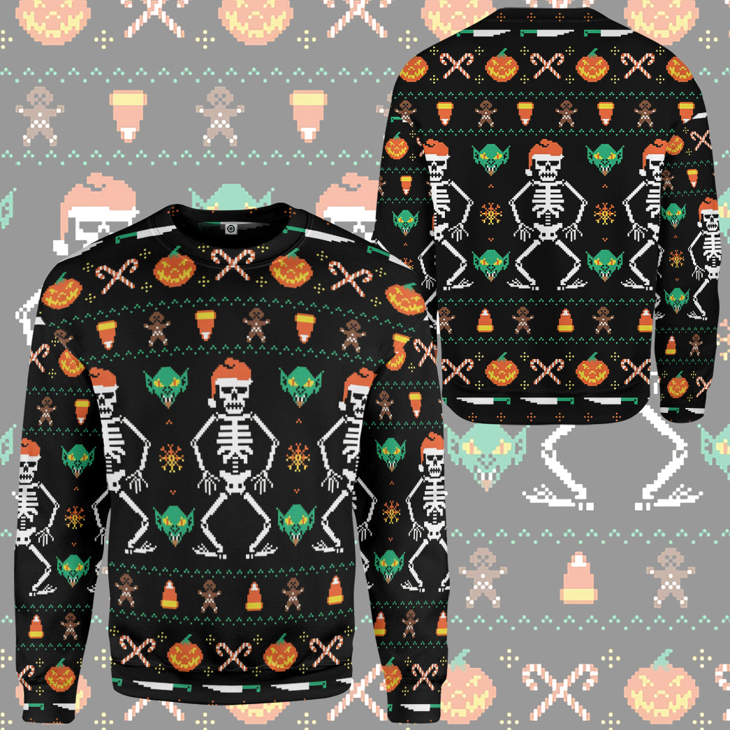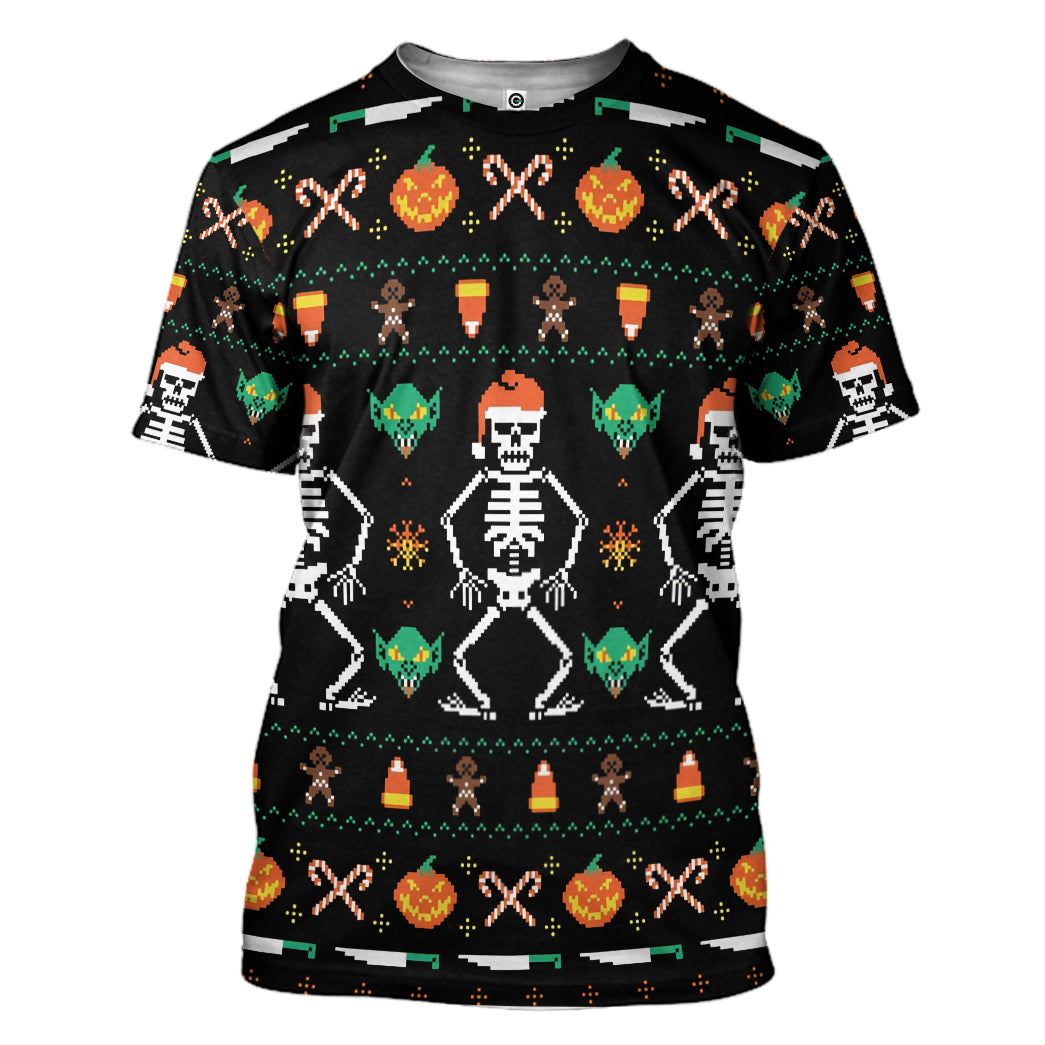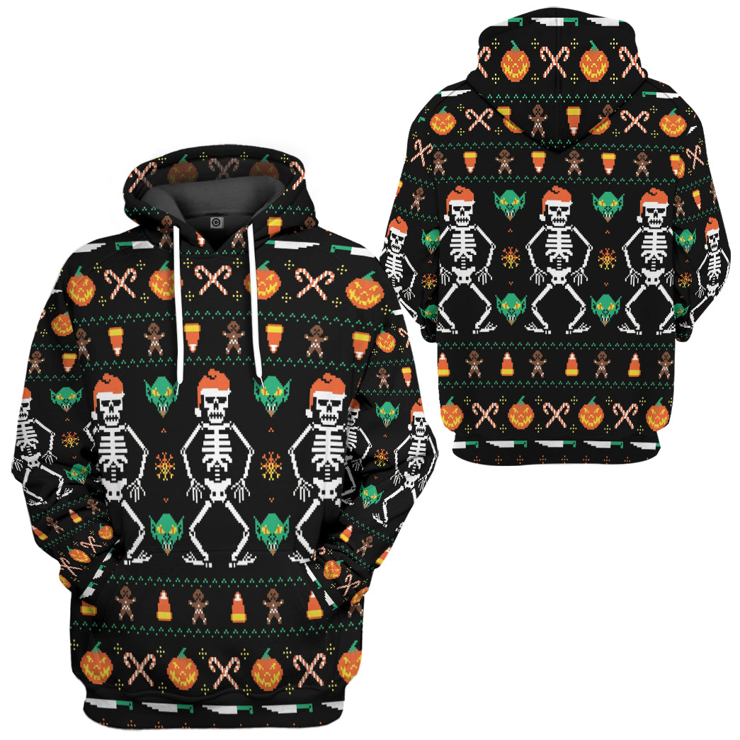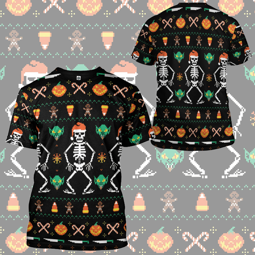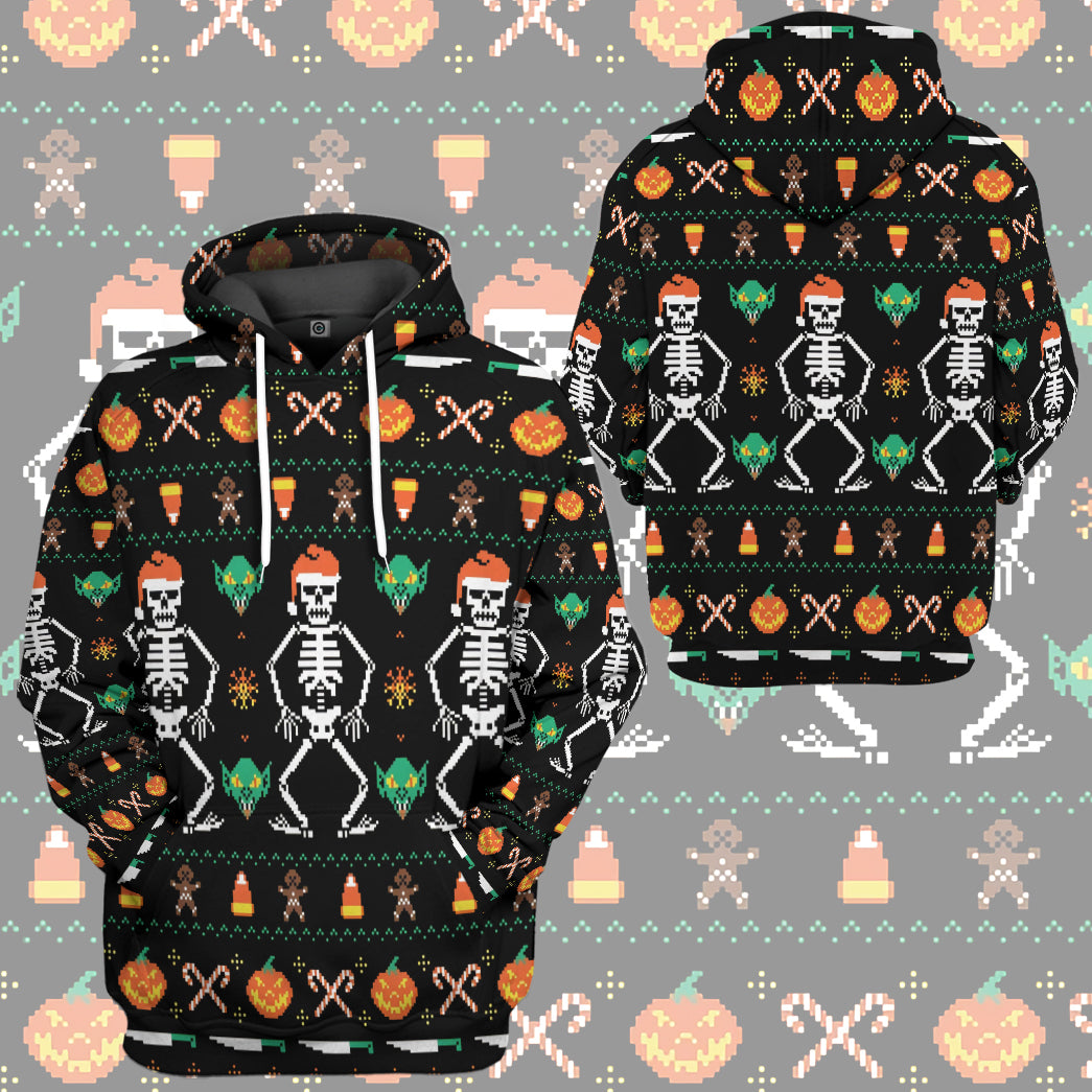 Gearhumans 3D Ugly Halloween Dancing Sketon Custom Hoodie Tshirt Apparel