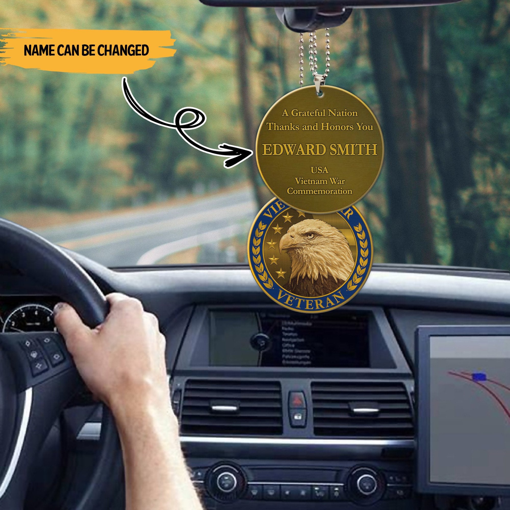Gearhumans 3D Vietnam Veteran Lapel Pin Custom Name Car Hanging