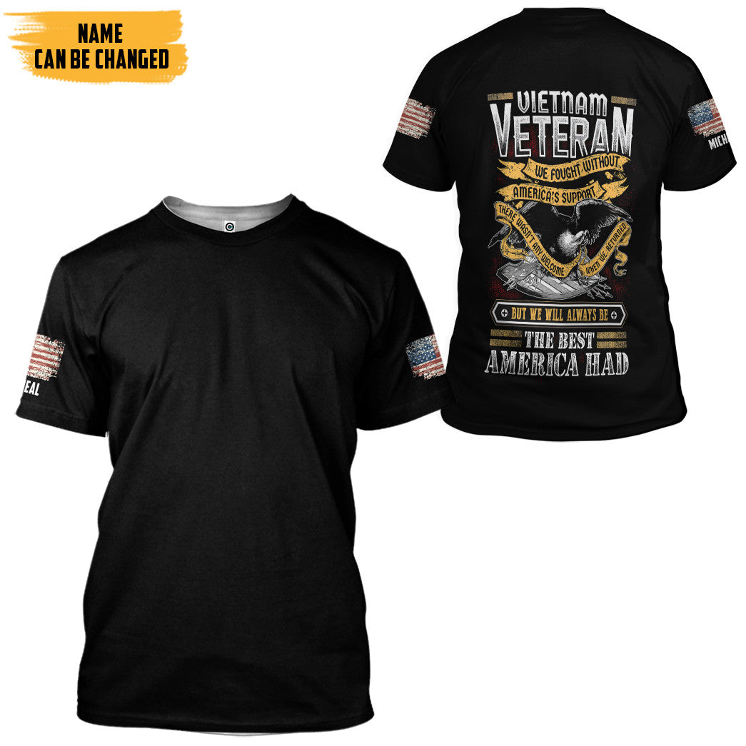 Gearhumans 3D Vietnam Veteran The Best America Had Custom Name Hoodie Tshirt Apparel