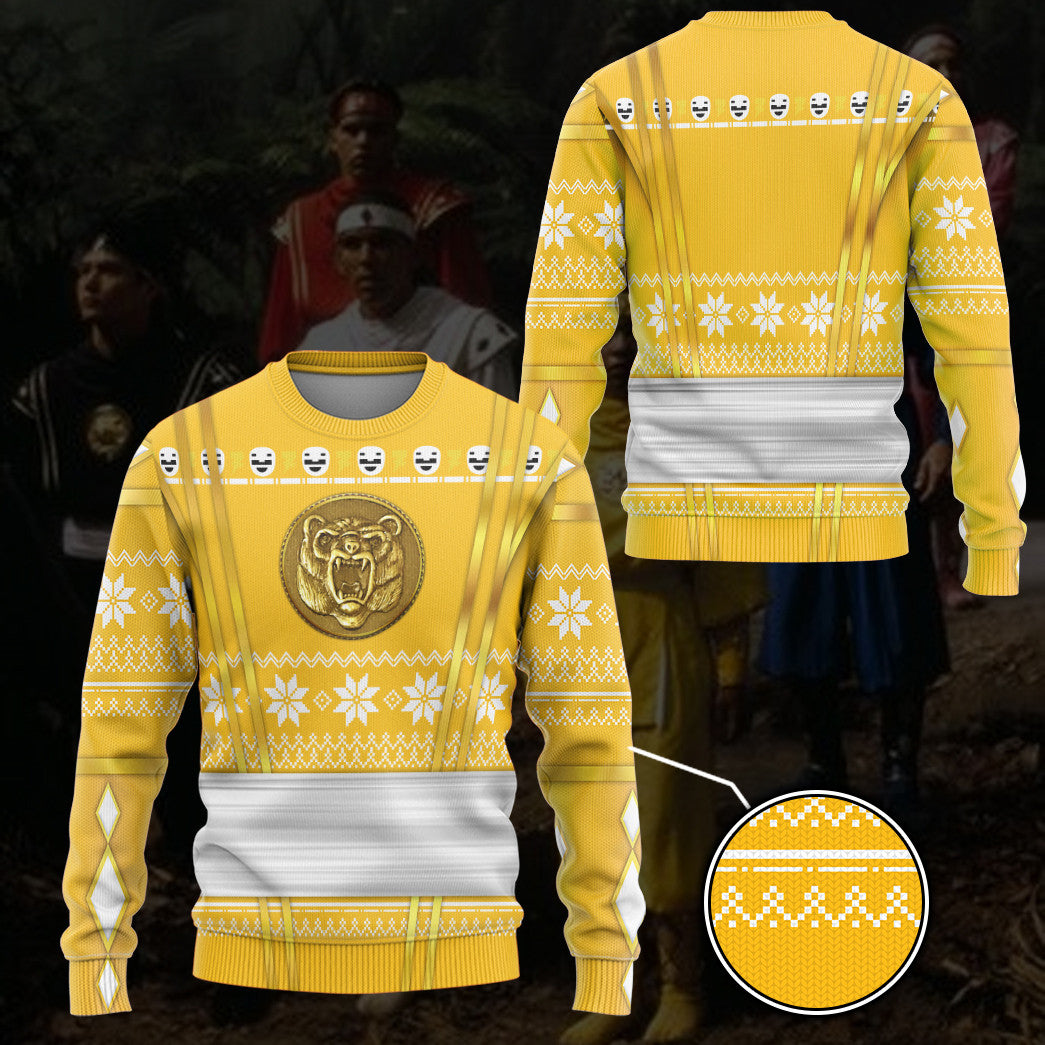 Gearhumans 3D Yellow Ninja Mighty Morphin Power Rangers Custom Ugly Sweater